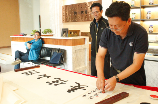 隨后,大家又來到燕麥博物館,感受燕麥文化、體驗燕麥產品的同時,并現場目睹書法名家張曉華老師的揮毫潑墨。孟才介紹,中國燕麥的市場份額在100億元以上,裸燕麥起源于中國,但是國內燕麥深加工所用的原糧90%是進口皮燕麥,只有10%是國產裸燕麥,主要原因是國產裸燕麥多采用傳統(tǒng)旱作耕作方式,人工除草,有機種植,不使用除草劑、農藥、化肥等,畝產較低。但是,也正因如此裸燕麥的口感更好、質量更佳且蛋白質、脂肪、β-葡聚糖等營養(yǎng)成分均高于皮燕麥。得天獨厚的資源優(yōu)勢是陰山優(yōu)麥建企立身的根基和市場競爭的底氣,產品全部采用優(yōu)質的國產裸燕麥就是陰山優(yōu)麥的核心競爭力!