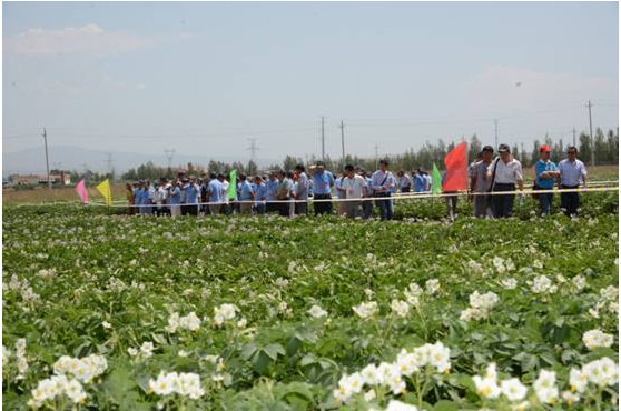 來賓參觀國家馬鈴薯種植大土城農(nóng)場標(biāo)準(zhǔn)化種植區(qū)