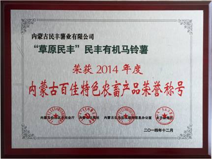 此次評(píng)選活動(dòng)自北方新報(bào)、正北方網(wǎng)、《北方新報(bào)》官方微信公布推選產(chǎn)品以來,來自全區(qū)各地11.2萬人次的消費(fèi)者對(duì)112家企業(yè)的539種推選產(chǎn)品進(jìn)行了投票。最終,經(jīng)過自治區(qū)農(nóng)牧業(yè)廳、內(nèi)蒙古食品藥品監(jiān)督管理局、內(nèi)蒙古龍頭企業(yè)協(xié)會(huì)的專家結(jié)合企業(yè)報(bào)名材料、企業(yè)年檢記錄、產(chǎn)品檢驗(yàn)報(bào)告及消費(fèi)者投票等多項(xiàng)內(nèi)容,推選出了120種內(nèi)蒙古百佳特色農(nóng)畜產(chǎn)品名單。我公司“草原民豐”有機(jī)馬鈴薯榮獲2014年度內(nèi)蒙古百佳特色農(nóng)畜產(chǎn)品榮譽(yù)稱號(hào)。
